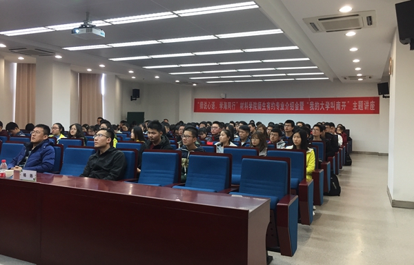 周震还为同学们带来了“我的大学叫南开”的主题讲座。他以自己切身经历提醒在场同学,大学是人生的关键阶段,要在大学里培养学习精神与学习能力,要敢于质疑导师与教授,始终保持好奇心与好胜心,不断摸索、不断尝试。讲座最后,周震围绕生涯发展规划、材料学科定位、本科生进实验室等与同学们进行了互动。