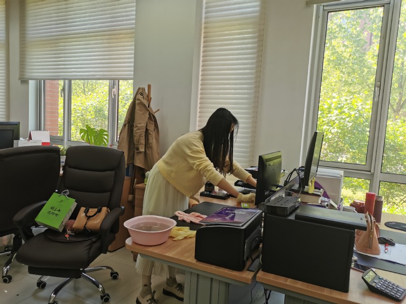 按照返岗安排计划,教职员工进入学院前,须要进行体温监测并如实填写个人健康台账;之后领取学院为各办公室准备的消毒用品和工具,对办公区域进行全面细致的消杀,并在结束后由学院领导班子进行检查监督。