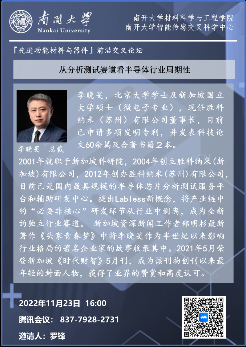 “先进功能材料与器件”前沿交叉论坛丨报告人:丁洪教授、李晓旻总裁
