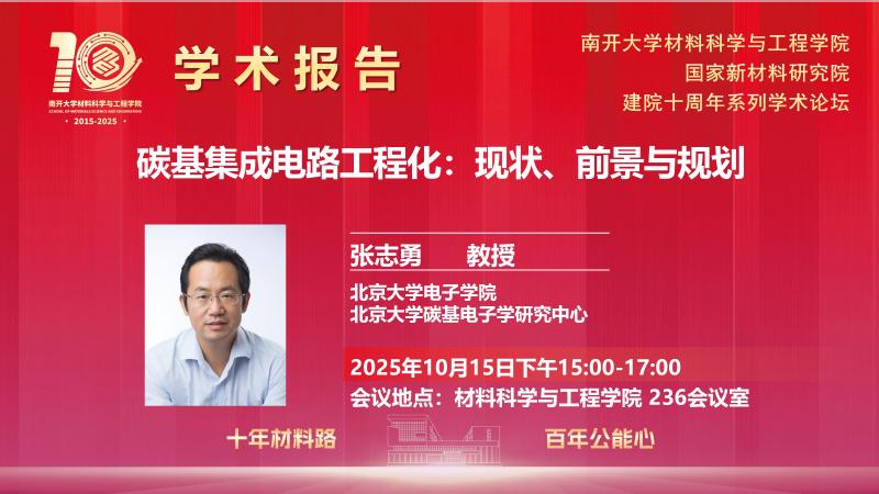 报告人简介:张志勇,博士,北京大学博雅特聘教授,电子学院教授,博士生导师。纳米器件物理与化学教育部重点实验室主任,碳基电子学研究中心副主任。主要从事碳基纳米电子学方面的研究,探索基于碳纳米管的CMOS集成电路、传感器和其他新型信息器件技术,并推进碳基信息器件技术的实用化发展。在Science,Nature Electronics与Physical Review Letters等学术期刊上发表SCI论文200余篇,被引用12000余次,H因子57。部分工作获得中国高校十大科技进展、国家自然科学二等奖(2/5)、教育部自然科学一等奖(2/8)、中国科学十大进展、中国半导体十大进展。获得中国青年科技奖、茅以升北京青年科技奖。研究方向:1、碳纳米管晶体管和集成电路;2、碳基生物、气体传感器;3、碳基红外探测器件和芯片。