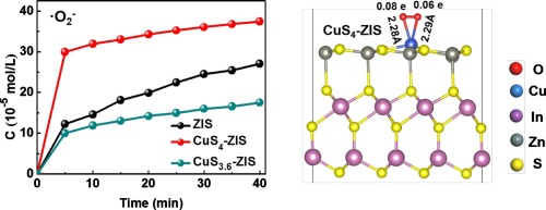 It is quite important and challenging for efficient activating the molecular oxygen (O-2) to reactive oxygen species (ROS), especially in environmental remediation. Herein, the CuS4 atomic clusters are constructed on the surface of ZnInS4 nanosheet (CuS4-ZIS), which shows much better ability for activating O-2 to ROS than pristine ZnInS4 nanosheet (ZIS) and the CuS3.6 atomic clusters counterpart (CuS3.6-ZIS). Results display that CuS4-ZIS can energetic favorably adsorb the O-2 and more electrons could transfer from the CuS4-ZIS to O-2 than ZIS and CuS3.6-ZIS. Besides, a better charge separation and transfer is observed on CuS4-ZIS. Thus, higher concentration of superoxide radicals (center dot O-2(-), partially transformed into center dot OH) can be generated over Cu-S-4 atomic clusters under light illumination. Therefore, CuS4-ZIS exhibits higher degradation efficiency of tetracycline (TC) than pristine ZIS and CuS3.6-ZIS. Moreover, the degradation pathway of TC is proposed based on the results of HPLC-MS and the theoretical calculations.