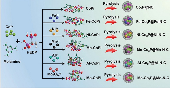 论文题目:Activity promotion of core and shell in multifunctional core-shell Co2P@NC electrocatalyst by secondary metal doping for water electrolysis and Zn-air batteries