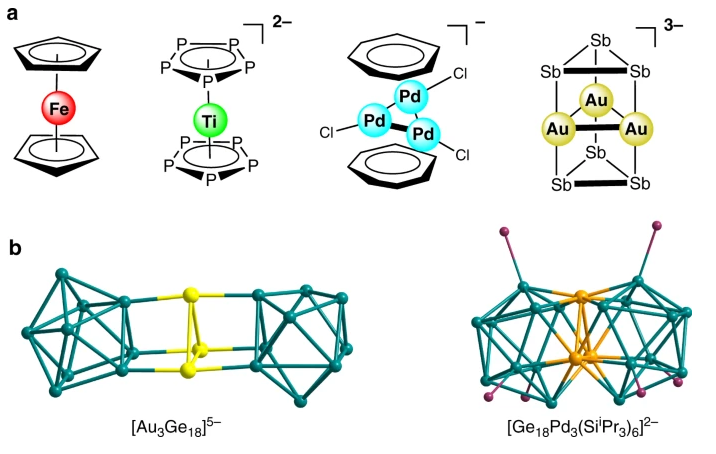 论文题目:A sandwich-type cluster containing Ge@Pd3 planar fragment flanked by aromatic nonagermanide caps
