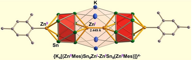 论文题目:[Sn8]6--Bridged Mixed-Valence ZnI/ZnII in {[K2ZnSn8(ZnMes)]2}4- Inverse Sandwich-Type Cluster Supported by a ZnI-ZnI Bond